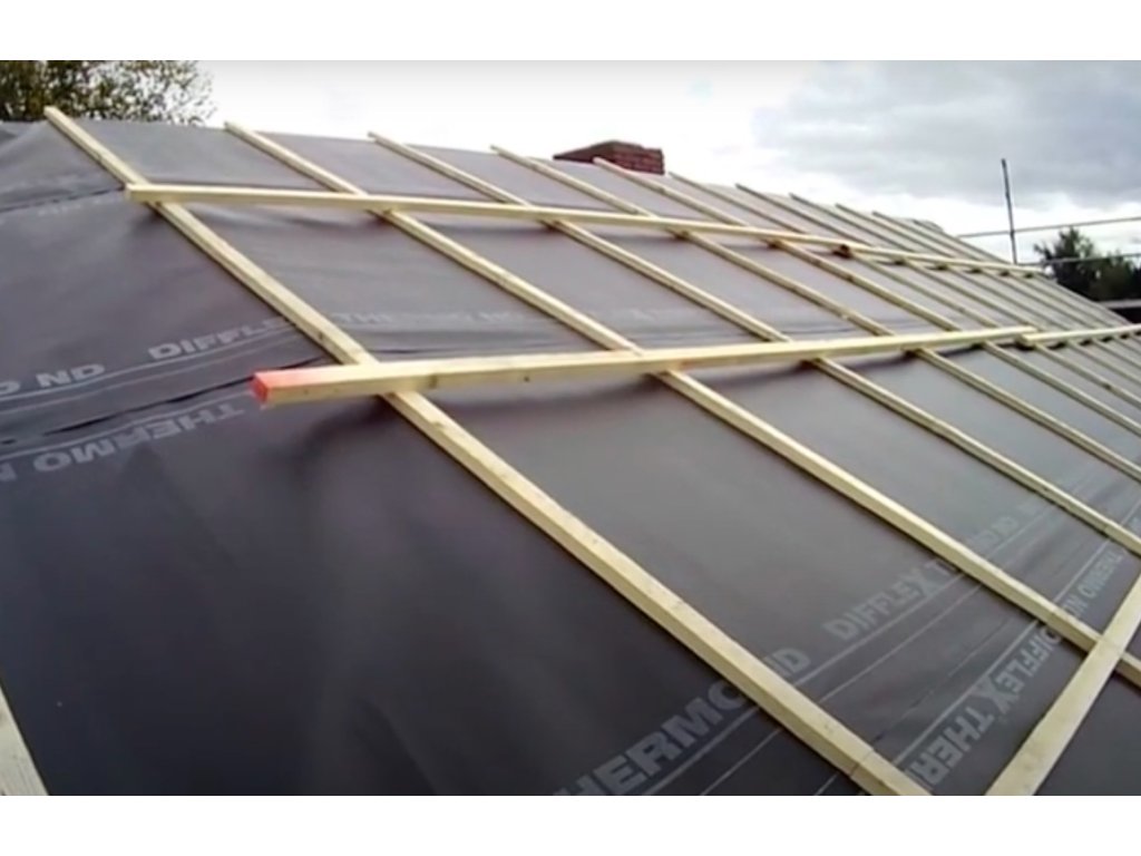 DIFFLEX® THERMO TPU ND SK lze pokládat přímo na tepelnou izolaci nebo dřevěné bednění. Pokládka se provádí od okapu směrem k hřebeni, s přesahem cca 10 cm dle značení, bez pnutí a s minimálním průhybem mezi krokvemi. Fólie se fixuje pomocí kontralatí.
