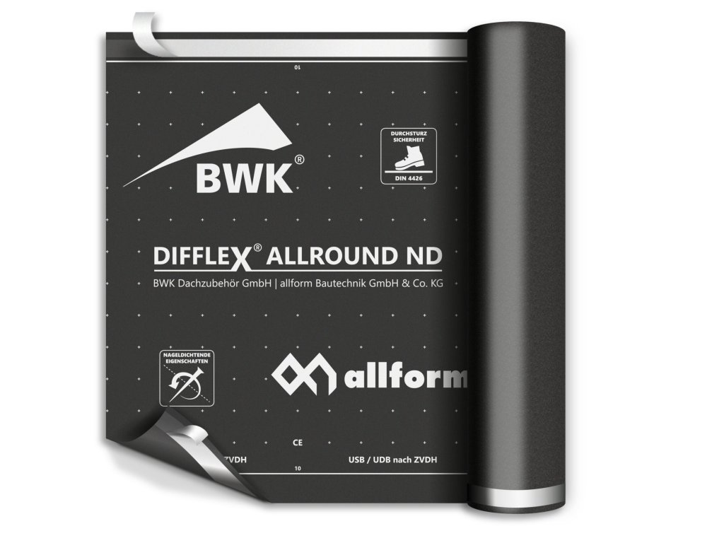 DIFFLEX® THERMO TPU ND SK je difuzně otevřená podstřešní a podkladní fólie vyrobená z polyesterového netkaného rouna (PES) s jednostrannou monolitickou speciální povrchovou úpravou z TPU kopolymeru. Tato povrchová úprava zajišťuje vodotěsnost, těsnicí schopnost a protiskluzové vlastnosti a zároveň dlouhodobou stabilitu difuzních parametrů.